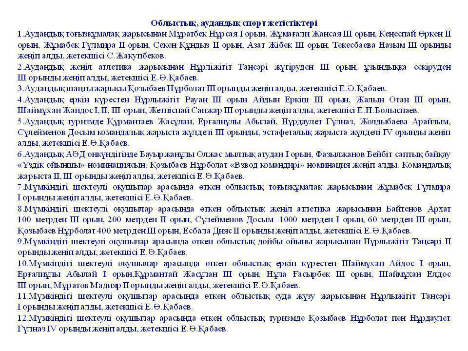 Оқушылар жетістігі » Қаракемер орта мектебі МДШО ММ