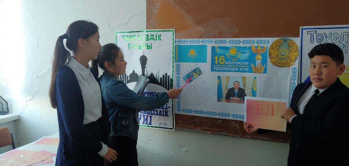 Алматы облысы Ақсу ауданы «Қаракемер орта мектебі, мектепке дейінгі шағын орталығымен» коммуналдық мекемесінде 2019 жылдың жұмыс жоспарына сәйкес 16 желтоқсан - Қазақстан Республикасының Тәуелсіздік мерекесіне орай сынып сағаттары отті » Қаракемер орта мектебі МДШО ММ