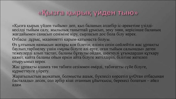» » "Қызға қырық үйден тыйым"