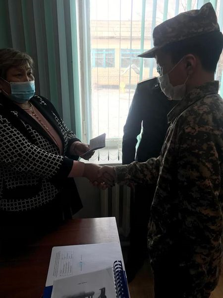 Қазақстан Республикасы қорғаныс министрлігінің әскерге шақыру учаскесіне тіркелу туралы куәлігін тапсыру салтанатты түрде оқушыларға табысталды.